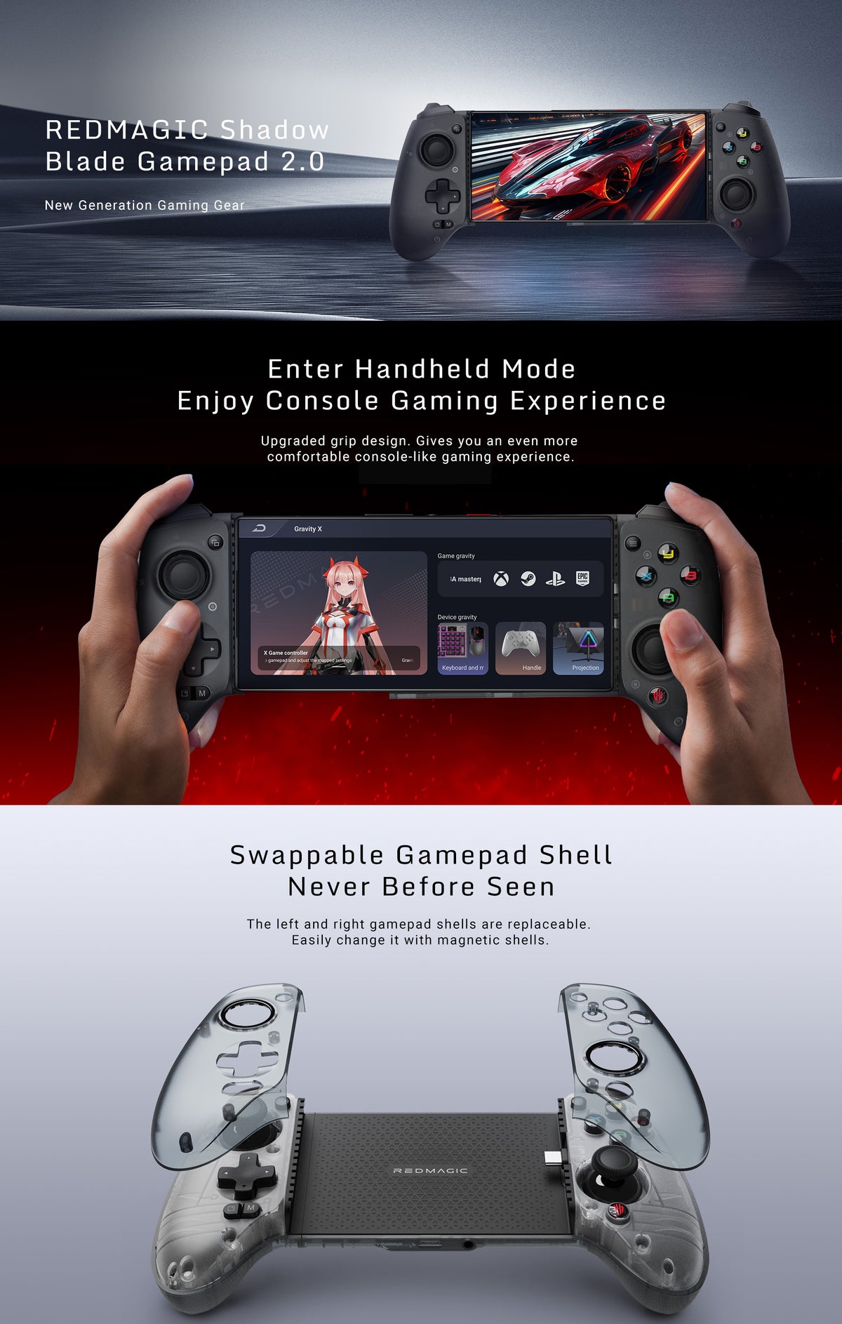 Take command of your gaming experience with the REDMAGIC Shadow Blade Gamepad 2. Designed for precision and comfort, it's your key to mastering every move on the virtual battlefield.